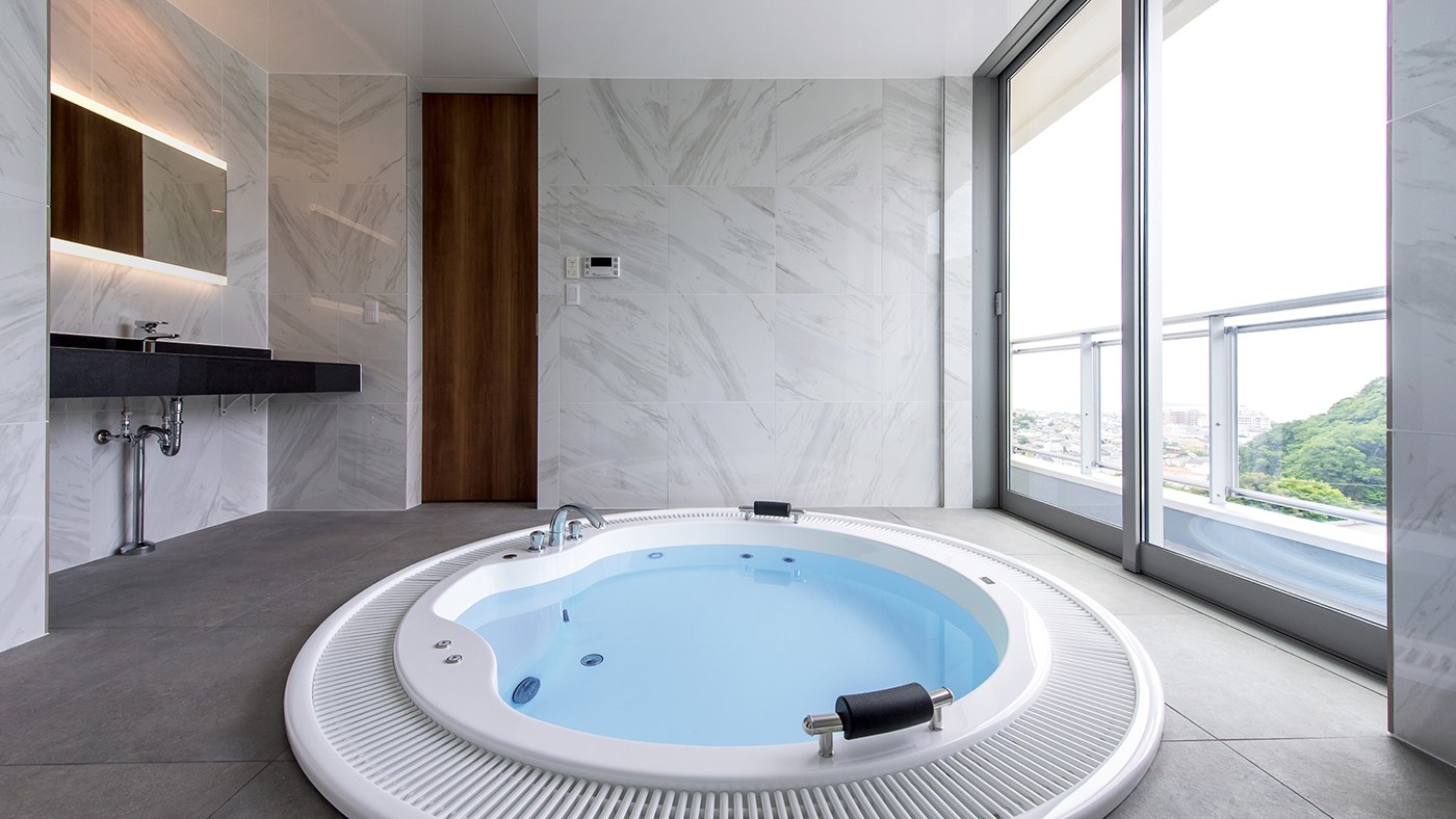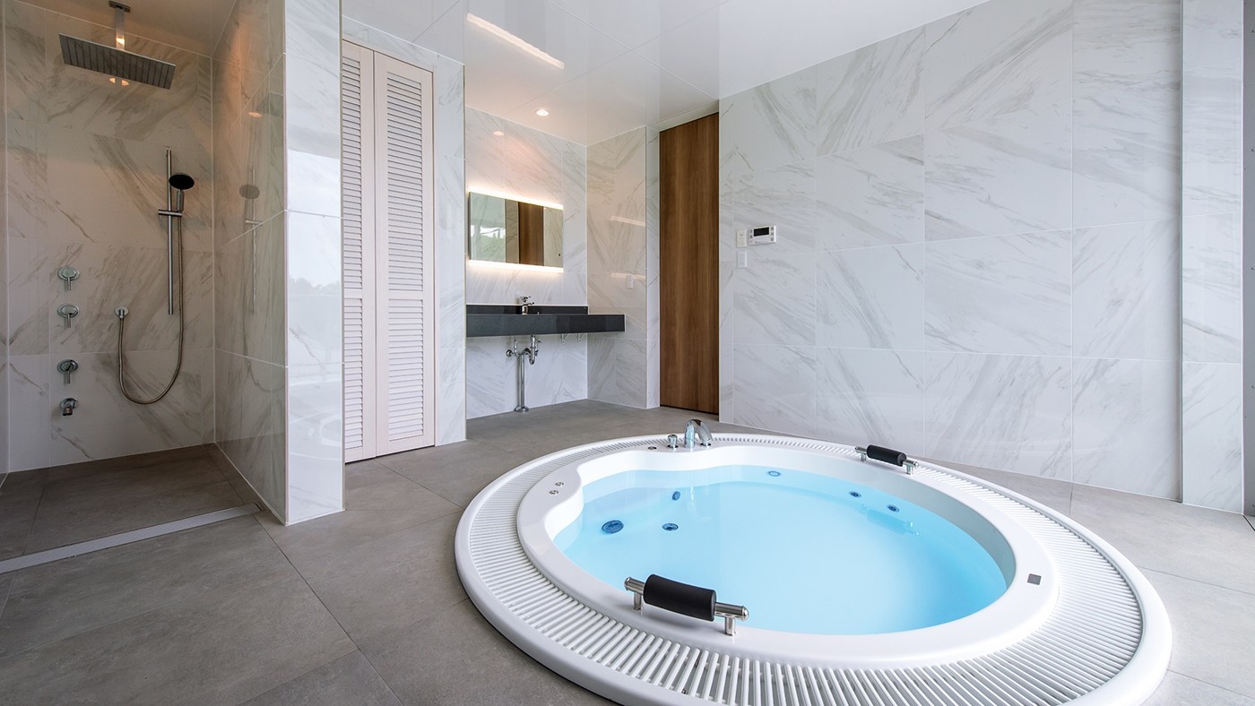大きな窓を設けて外の景色を取り込んだり、天井を高くして圧倒的な開放感を演出したりと、バスルーム自体を建築設計の段階から「リゾートのような特別な場所」として創り上げることが可能です。ジャグジーを主役に、理想の空間を自由に描けること。それが、広いバスルームだけが持つ特権と言えるでしょう。
